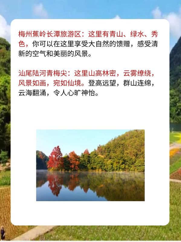 梅州蕉岭长潭旅游区:这里有青山、绿水、秀色,你可以在这里享受大自然的馈赠,感受清新的空气和美丽的风景。