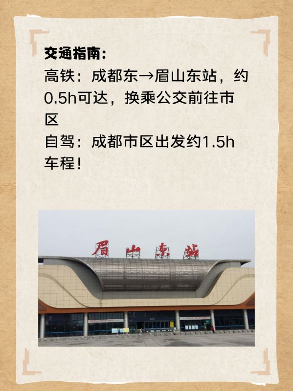 高铁:成都东→眉山东站,约0.5h可达,换乘公交前往市区