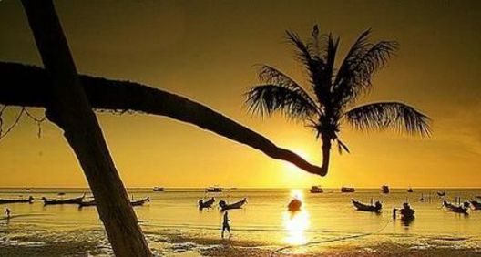 自然景观;在苏梅岛洋溢着热带风情的飞机场附近有一座建在高台上的金色大佛像。佛像面朝绿色的小山,背对无边的大海,是欣赏落日的好去处。但要看日出的话就得回到查温海滩,日出时间约为5点半至6点。