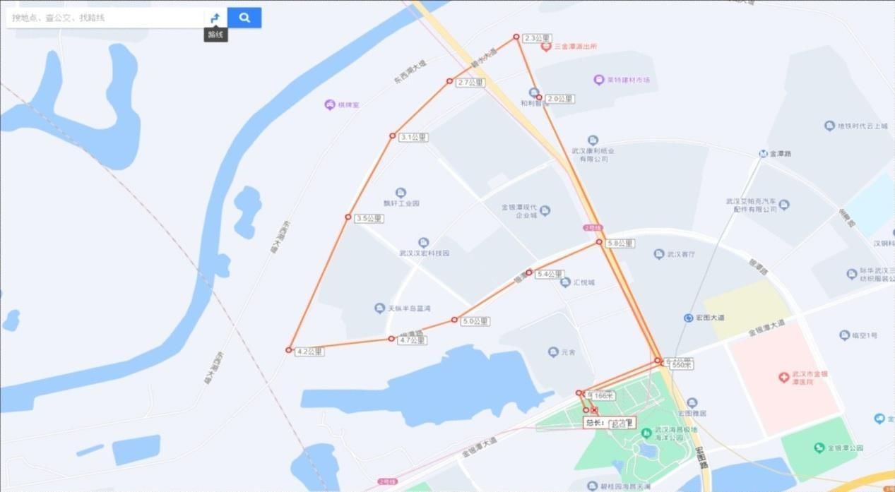 沿途停靠站点11站,分别是宏图路海洋世界、宏图路地铁宏图大道站、宏图路扬子江汽车、梧桐雨东广场、梧桐雨有动力乐园、梧桐雨中广场、银潭路天纵半岛蓝湾、银潭路宏图二路、宏图路地铁宏图大道站、金银潭大道宏图路、宏图路海洋世界站。