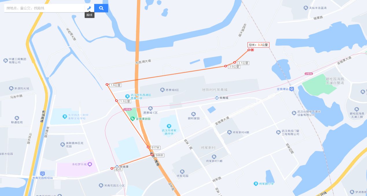 线路停靠站点为,去行方向:金银潭大道地铁金银潭站、姑李路车场南路、梧桐雨西入口、梧桐雨杜鹃溪谷。