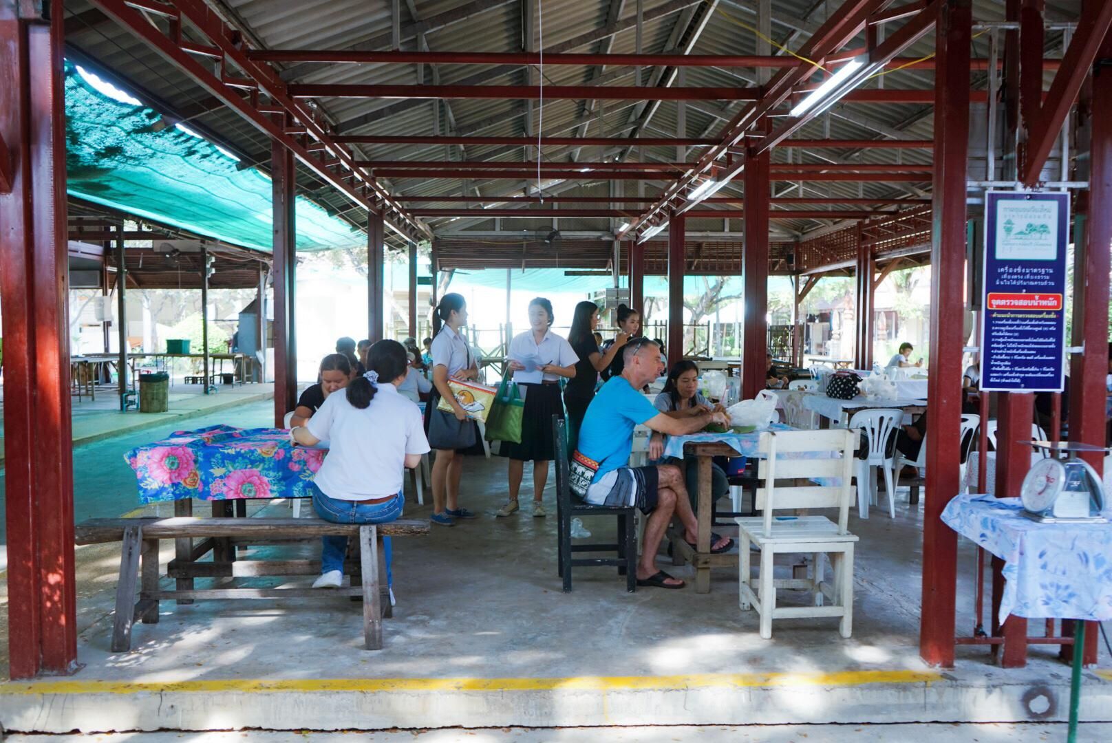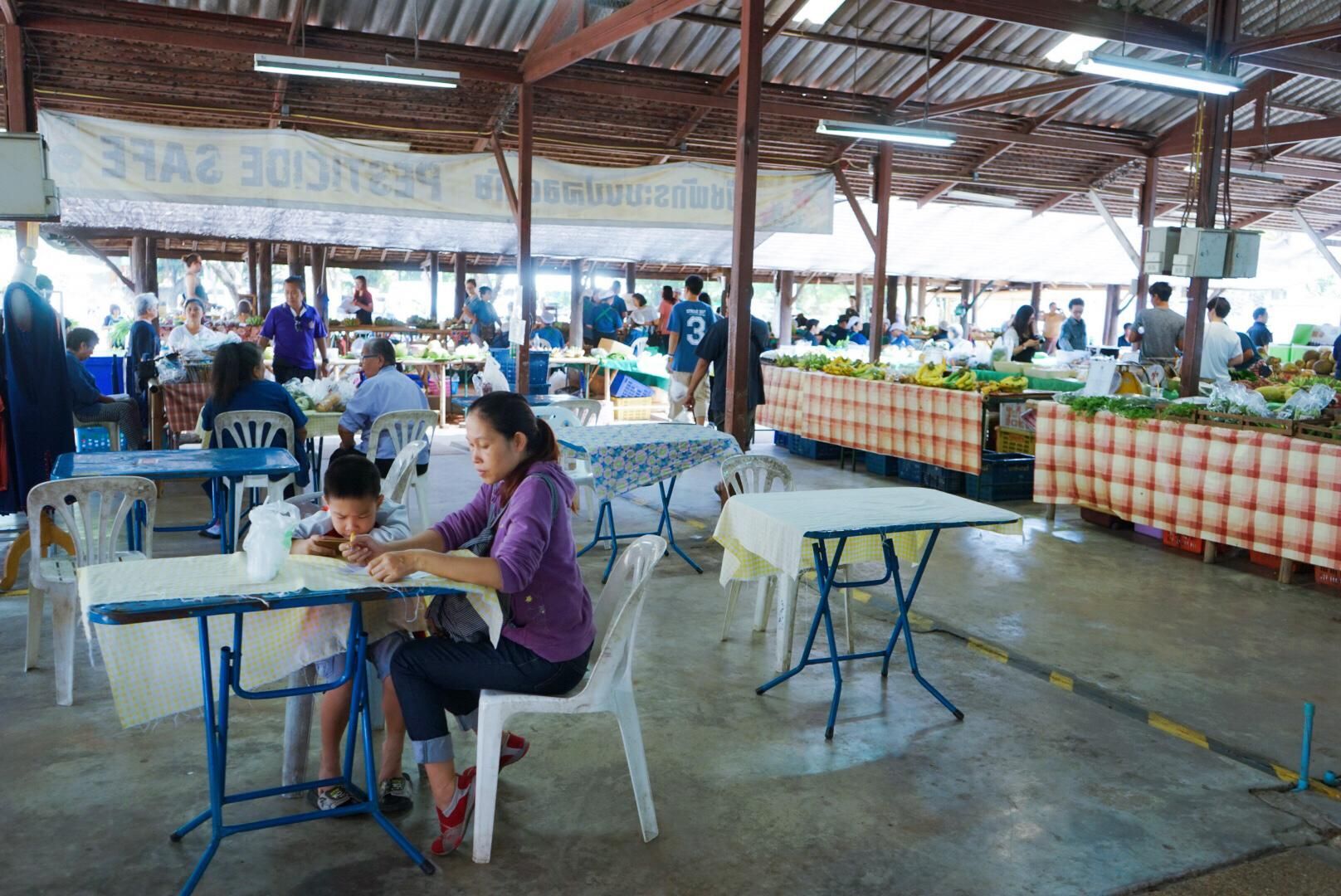 这片区域是专供客人歇脚与吃东西的,在中国大部分传统菜市场里,这样的区域往往是一次性碗筷堆成山,地面也会凌乱不堪,但是在这里,却完全不一样。
