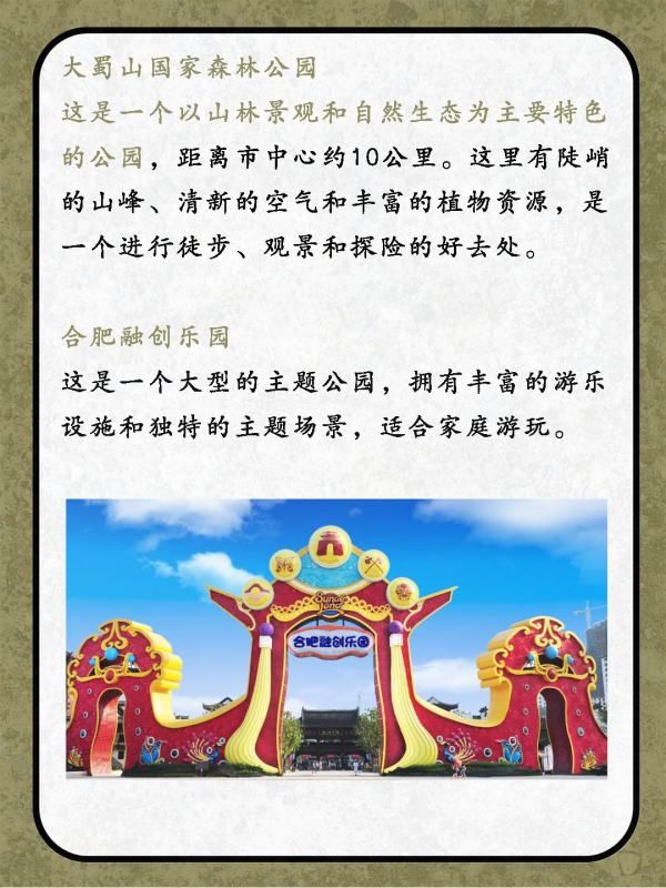 合肥融创乐园:这是一个大型的主题公园,拥有丰富的游乐设施和独特的主题场景,适合家庭游玩。