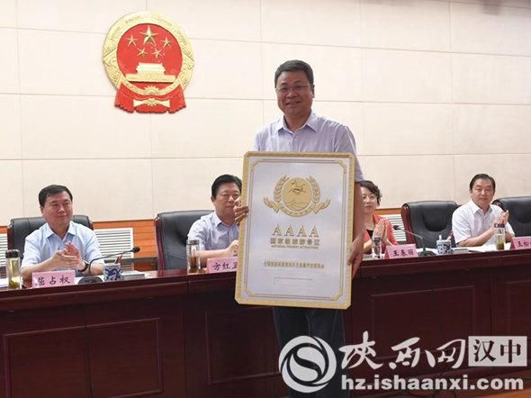 会议通报了汉中市全域旅游示范市创建情况,宣读了汉中市人民政府《关于表彰奖励2018年度旅游标准化创建工作先进单位的通报》,为2018年创建的4A级景区留坝县中国栈道水世界景区授牌。