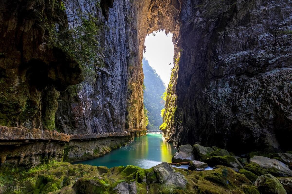 接下来,让我们来看看这里都有哪些精彩的景点。首先是大七孔,它被水冲毁,但是现在有二个景点开放,其中峡谷、栈道、水流、和天生桥都是非常值得一看的。全程徒步大概需要两小时,你可以沿着水边崖壁栈道,全程不到5公里,绝对是一个值得探索的地方。如果你想轻松些的话,可以选择坐船,单程的票价是20元/人。这样你就可以在陆地和水上,一次性欣赏所有景点。
