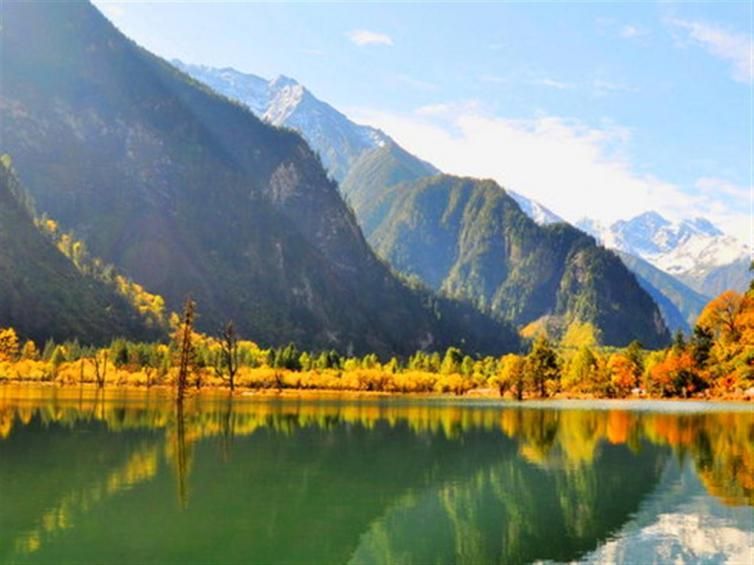 以冰川、雪山、草甸为主,自然景色和人文景观并存的风景区。秋季是徒步爱好者的天堂,名气响彻国内外。而到每年九月,景区已经是冰天雪地的景象,一路上都能看到雪山和红叶,二者同时出现实属罕见,红叶在十月下旬到十一月上旬最美。