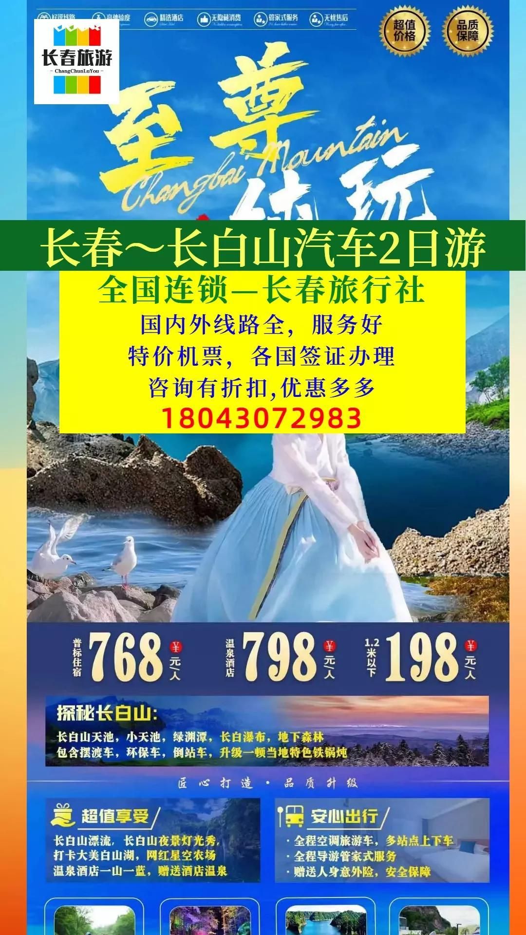 对于这个长白山2日旅游团,《长春到长白山2日旅游团》推出了特别优惠,只要仅需xx元,您就能获得这个难得的旅行机会!数量有限,赶紧拨打我们的热线电话,预订您的行程吧!