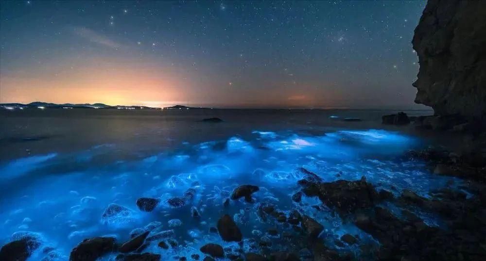 在四月,生活在深海的介形虫出来聚集在一起,发出蓝色光芒,形成一片美轮美奂的“蓝眼泪”独特景色。