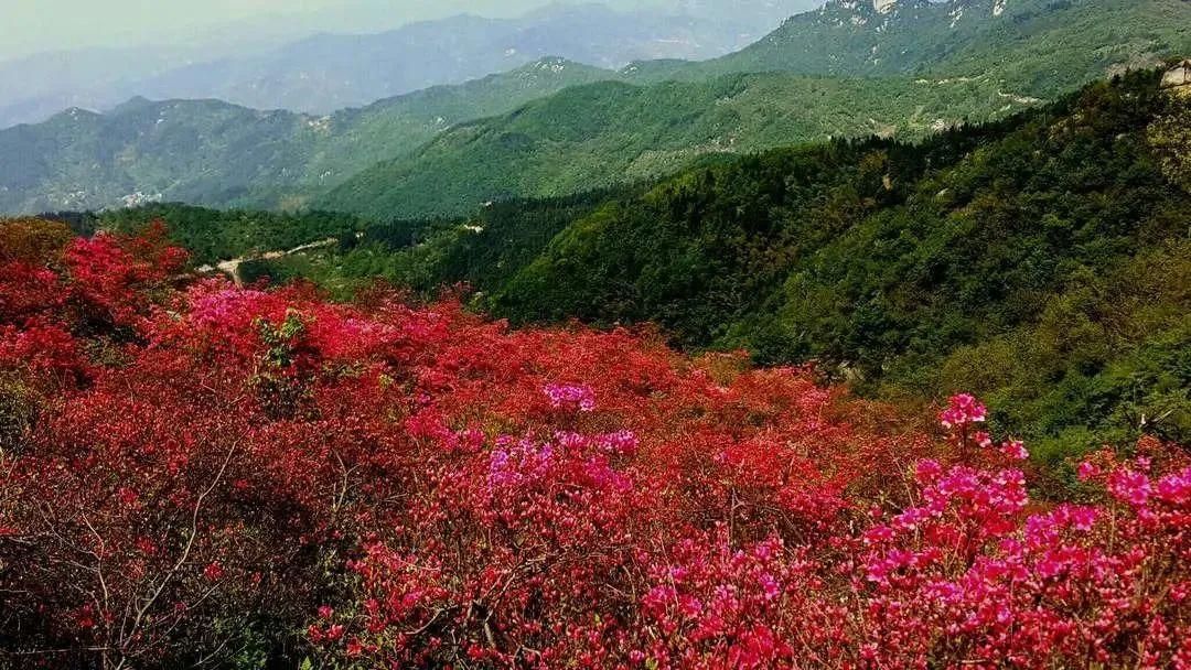 在清明之后,大别山映山红适时盛开,红的、紫的、黄的竞相开放。