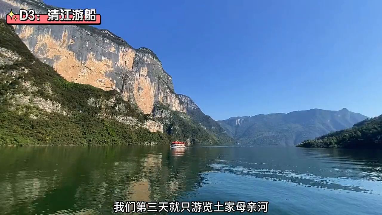 ·第二天直接杀到恩施大峡谷,打卡七星寨和一线天。这是恩施最受欢迎的景点,据说是地球最美丽的"伤痕",也有说是地球最美丽的峡谷。但是全程下来暴走不少于5个小时,小乖乖们这天会有点废腿。所以第三天就只游览土家母亲河清江河,坐个船悠哉悠哉的一天,欣赏清江十景之一的蝴蝶崖。