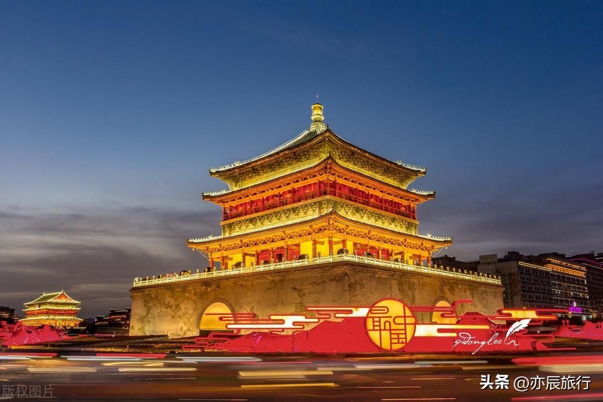 西安钟鼓楼位于陕西省西安市新城区玄武路126号,是一个西安夜景文物保护单位。钟鼓楼是古代城市中心的标志性建筑,也是西安的地标之一。在夜晚,钟鼓楼会点亮灯光,增添了浪漫的氛围,游客可以欣赏到美丽的夜景,感受古城的魅力。