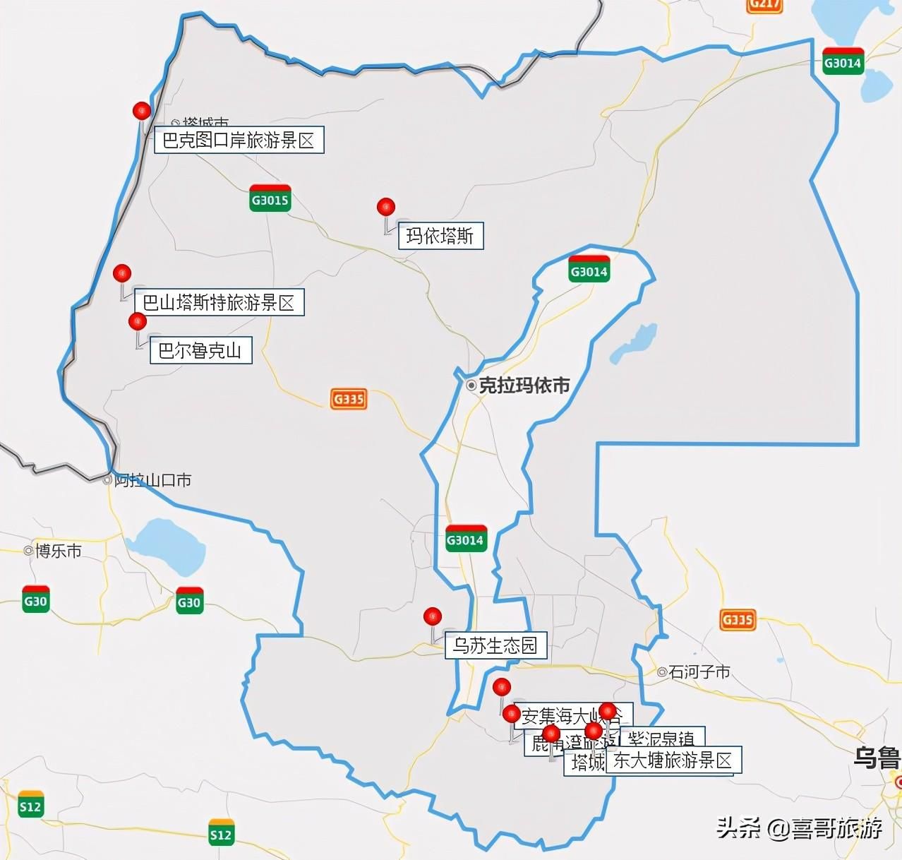 1、塔城十大景点依次为:巴尔鲁克旅游风景区、安集海大峡谷、鹿角湾旅游风景区、巴山塔斯特旅游风景区、紫泥泉镇、沙湾温泉旅游区、巴克图口岸、东大塘风景区、玛依塔斯、乌苏生态园等。具体位置如图所示。