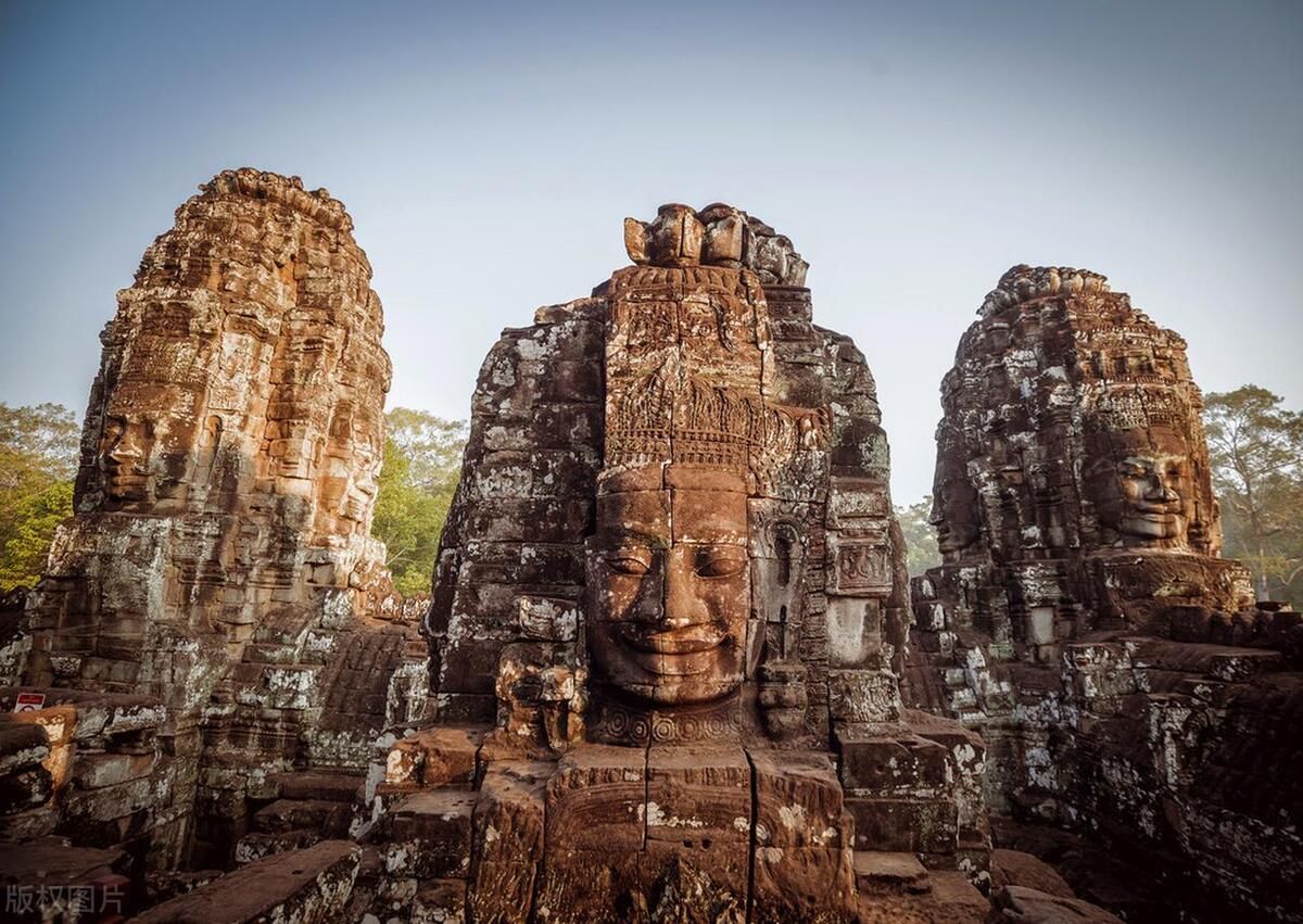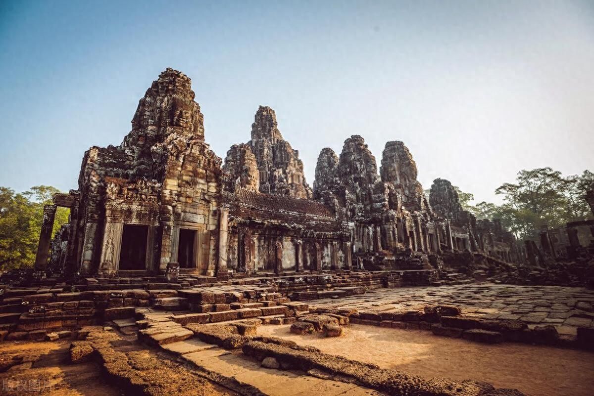 2、巴戎寺: 以四面佛雕像闻名,是吴哥的标志性建筑之一。