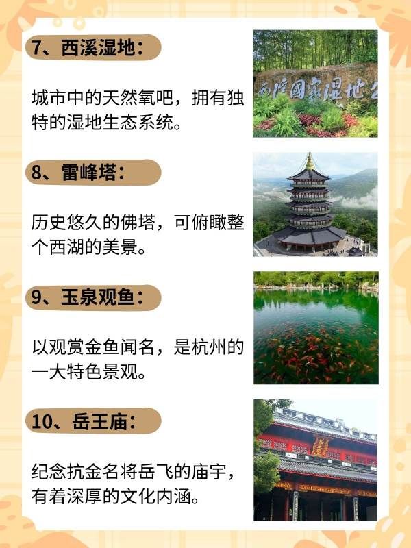 10、岳王庙:纪念抗金名将岳飞的庙宇,有着深厚的历史文化内涵。