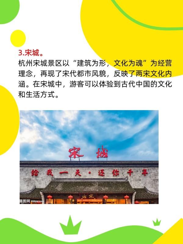 4、杭州宋城:以宋代生活为背景的的主题公园,让人穿越回宋朝。