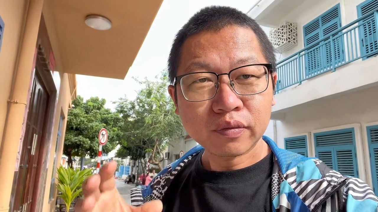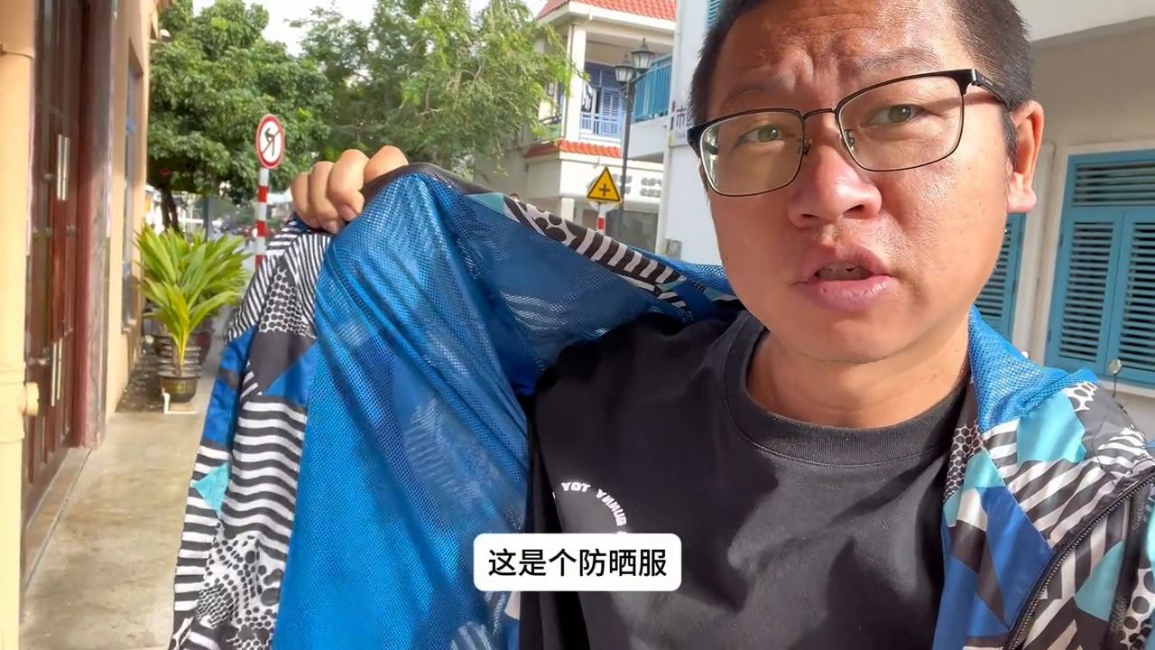 我翻了一下去年这个时候的视频,去年同期同日的视频,我去年这个时候在海口参加冬交会,从海口回来时候是连外面加毛毛的衣服都穿上了。其实正常来说在三亚,我就是这一身里边是个短袖,中午的时候可以把这个,这是个防晒服,不是说夹克衫,我就这一身就够了。