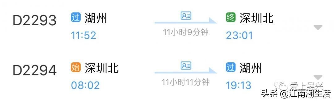 此次调图,湖州站首开D2293次至深圳的直达动车,此车由南京南站首发至深圳北,全程运行时间11小时9分钟,更方便啦!随着调图的进一步完善,预计9月以后会新开湖州至深圳方向高铁,预计整体车程还会缩短。