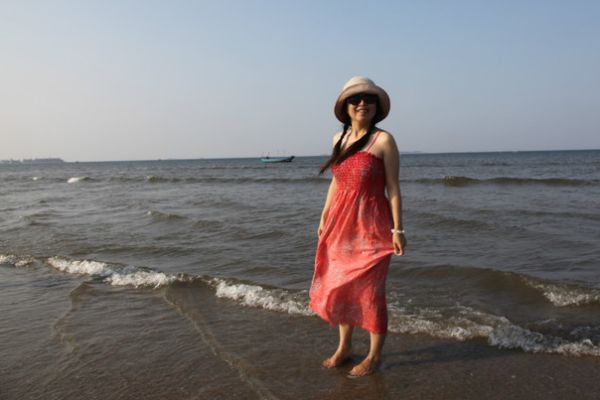 服装与海边拍照