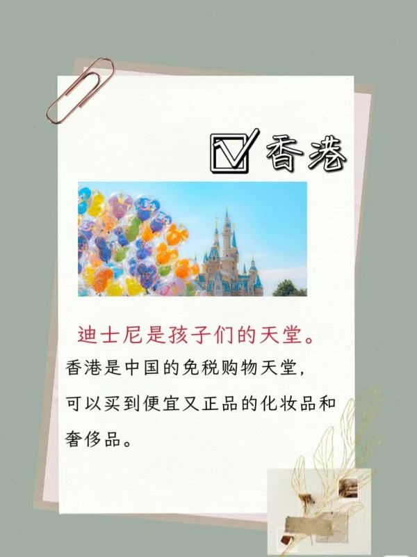 亮点:光是迪士尼,香港就能成为成千上万孩子的天堂。香港是个小地方,地面和地下交通都很发达,带着孩子出行完全不用担心。而且香港是中国的免税购物天堂,在这里你可以给自己买到便宜又正品的化妆品和奢侈品,还可以买到很多比内地便宜或者内地根本买不到的婴儿用品!