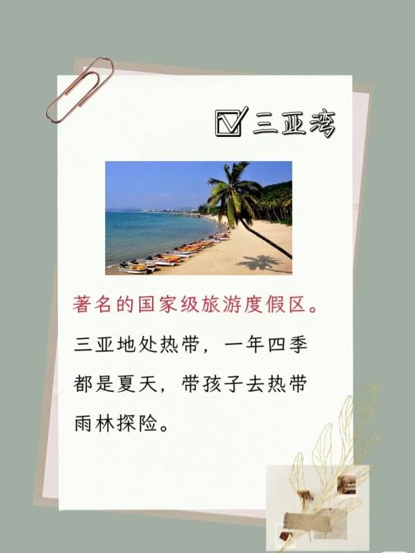 推荐理由:1岁以下的宝宝妈妈让我推荐一个目的地,三亚一直是我的首选。因为三亚地处热带,一年四季都是夏天,所以任何时候都适合旅游。它绝对拥有中国最美丽的海水和海滩。因为发展较早,酒店行业非常完善,从亚龙湾、大东海、三亚湾到海棠湾,适合带宝宝的家庭亲子旅行的酒店数不胜数。