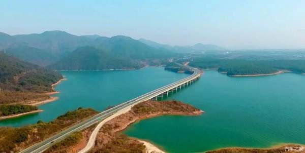 庐山西海原名柘林湖,庐山西海的山水堪称全国一流,由莲花城景区、青石湖景区、桃花溪景区、鹿角尖景区、百湾迷宫景区、红岩潭景区这六大景区组成。然而,永武高速的武宁段,横跨庐山西海景区,绝对是中国最美水上公路。