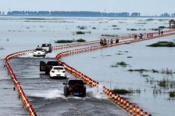 但是在晴朗的日子里,大湖池公路和其他公路没有什么不同。只有到夏季汛期,大湖池高速公路才会慢慢消失,变成一条跨湖公路。对于水漫过路面的景观,当地群众并不陌生。对于外来的游客来说,这条水上公路是他们的旅游打卡点,但是对于当地的局面却对此很是忧心。