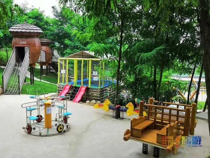 在这里,孩子们可以给松鼠喂食,观察它们的生活习性;还可以畅玩松果滑梯、树枝秋千、平衡木、四人自行车、戏水乐园、沙滩、攀爬索道、汽车摇摇乐等游玩项目。