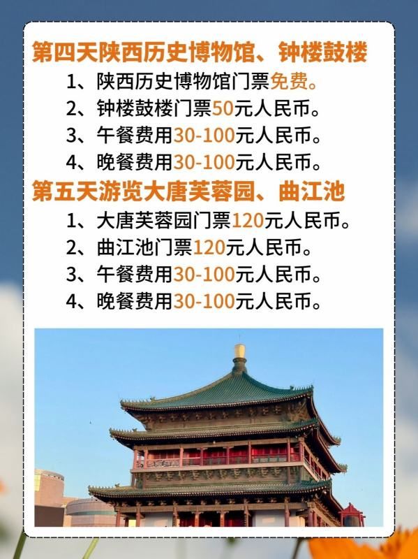综合计算,在西安玩5天的基本旅游费用大约在5000-10000元。这个价格仅供参考,具体花费还要根据个人需求和喜好而定。