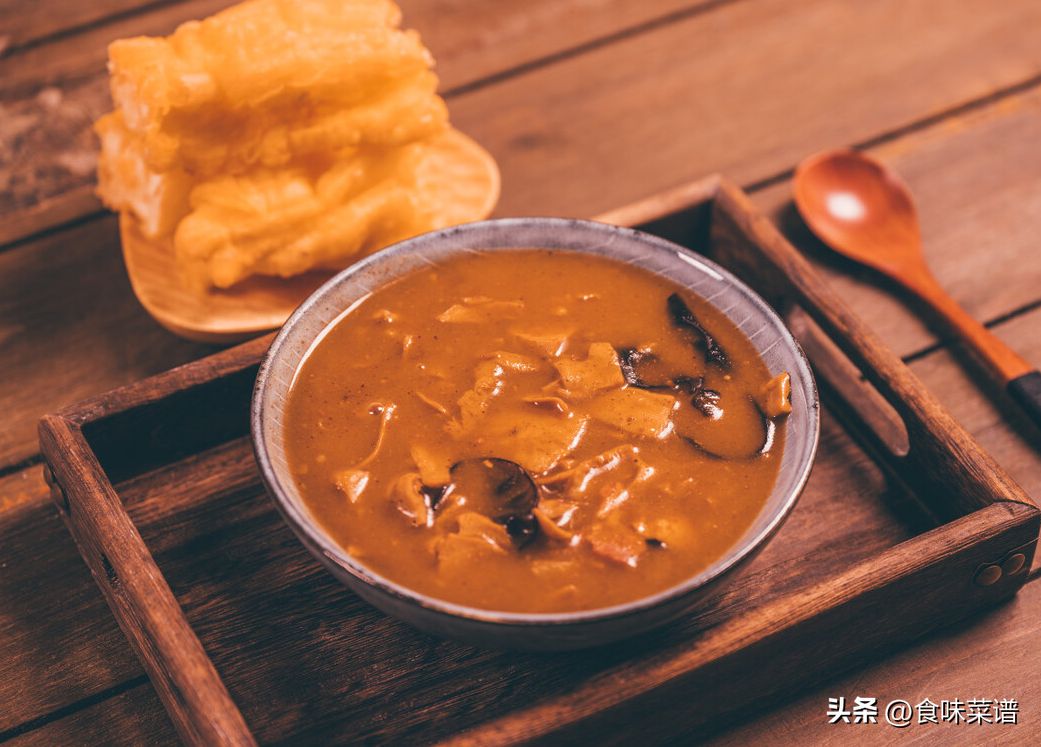 汤液粘稠,满满一碗而不会溢出。除了分量足,食材也十分丰富。牛肉、木耳、黄花菜、面筋、肉汤等十几种食材群英荟萃。一口下去辛辣咸香,酥脆的油条浸满汤汁,即可点燃味蕾,每一口都让人过足瘾!
