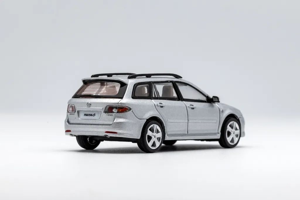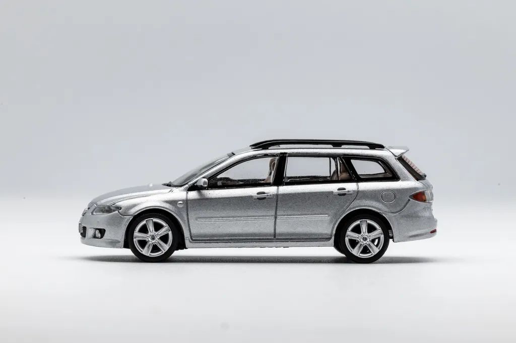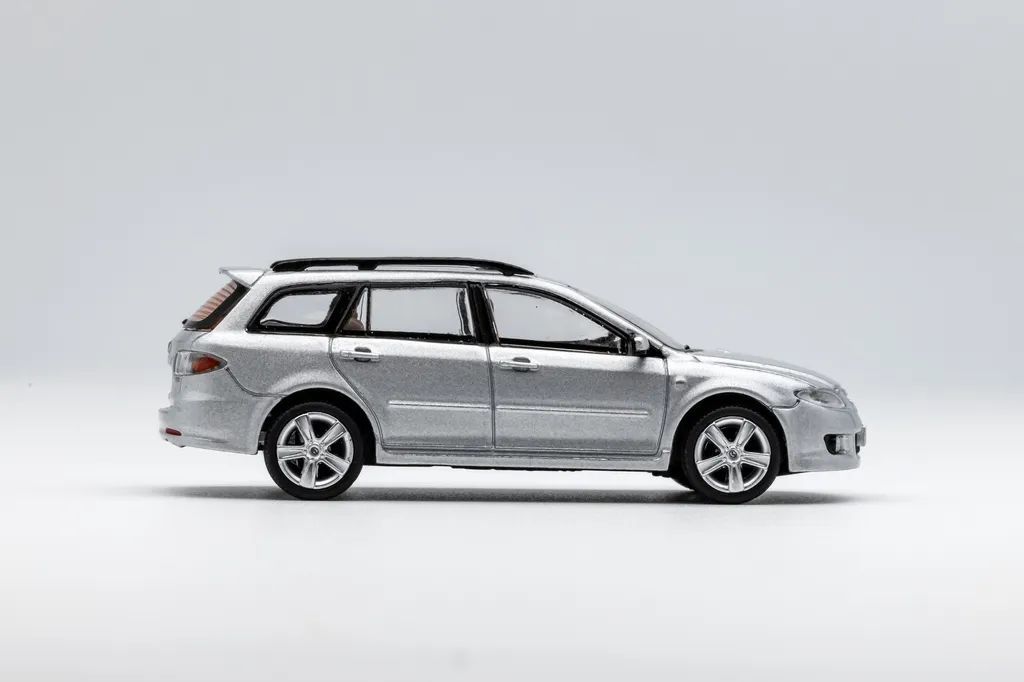 拓意影响形准的最大问题还是A柱太粗,这个问题其实在小比例模型上是比较多见的,而这款马6旅行版比早期的拓意模型进步的地方是车窗不会有明显的凹陷感,这次试玩的有银色和红色两个版本,两款模型的漆面整体中规中矩,红色也算是马自达的经典配色,不过这款红色漆还是偏厚,整个车身显肉,银色漆的要稍好,模型的缝隙还算均匀;车门把手为浮雕刻画,细节一般且显肉;车外后视镜为独立分件,而且有分色细节刻画;车窗有黑色边框,但和车身之间有缝隙,不过B柱C柱是立体的,不像有些模型直接移印黑色。