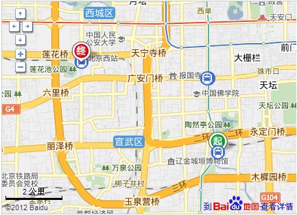 1、从北京南站乘坐地铁4号线大兴线,经过2站, 到达菜市口站