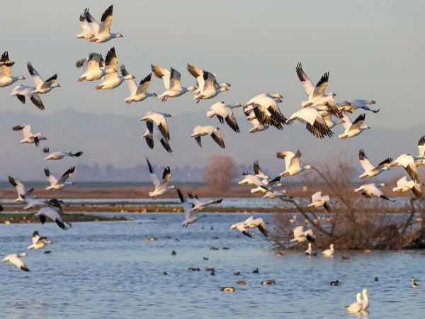 查干湖是吉林省重要的湿地保护区,鸟类生活的栖息地和迁徙中转之地。新甸泡位于查干湖保护区的核心地带,芦苇丛生,水草丰茂,一到鸟类繁衍迁徙季节,这里百鸟云集,堪称鸟类天堂。