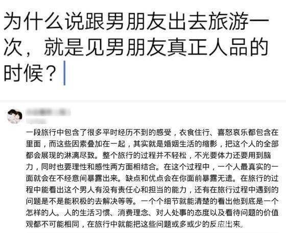 总而言之,通过与男友一起旅游,可以观察到许多方面的素质和性格特点,帮助了解男友的人品,并从中确认与其共处的长期价值群体。