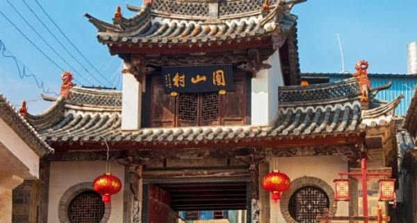 --团山村历史上曾是彝族人的居住地。这里所有建筑一律坐西朝东,屋面为青瓦,白灰粉饰外墙,青砖作墙裙,每座房屋都以天井为核心,大门多在主体建筑一侧,通过形状不一的过道,到达主体院落。