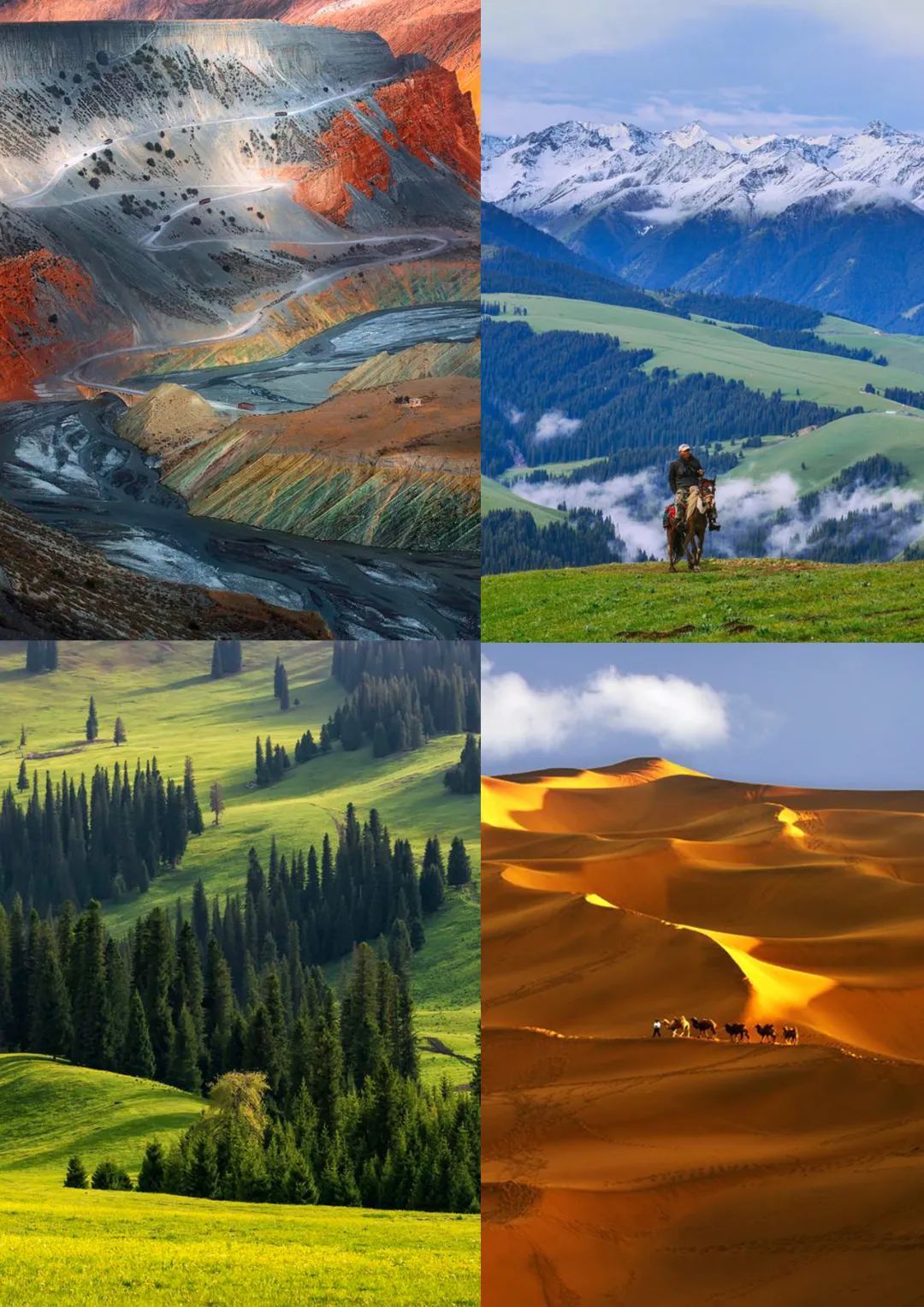 新疆很大,绵延166万平方公里,独占六分之一的中国,再加上四季不同的风光,想要一次玩遍注定是不可能的!通常我们会把新疆分为三大片区:北疆、伊犁、南疆、东疆四大片区,每个区域的风景、玩法都各具特色:
