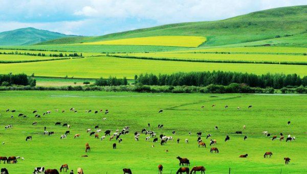 9. 呼伦贝尔草原:呼伦贝尔草原是中国著名的大草原之一,春季时草原上的各种花草开始生长,非常美丽。