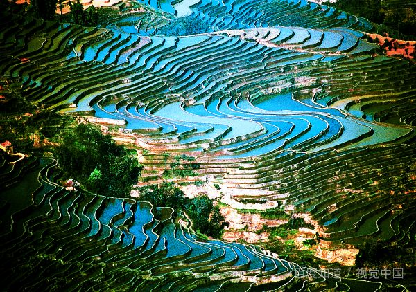 4. 云南元阳梯田:云南元阳梯田是中国著名的旅游景点之一,保存了许多哈尼族的传统文化,春季时田间的油菜花绽放,非常美丽。