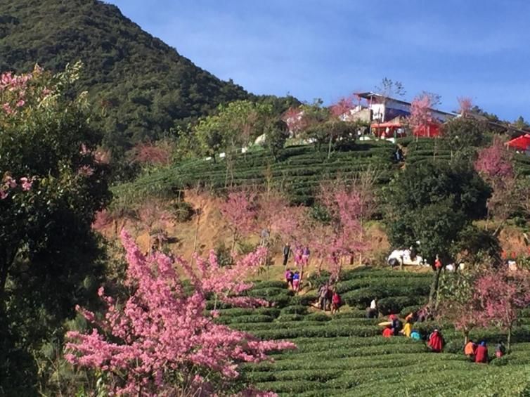 每年12月中旬,全国大部分地区天寒地冻,而美丽的云南南涧县却春意盎然。漫步云雾缭绕的千亩茶园,碧波荡漾的翠绿映衬着如霞似火的粉色樱花,仿佛置身于油画中。