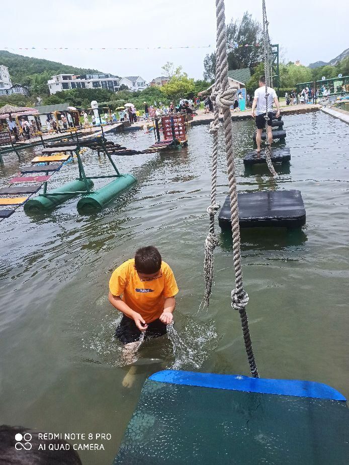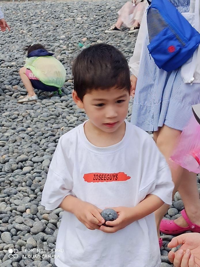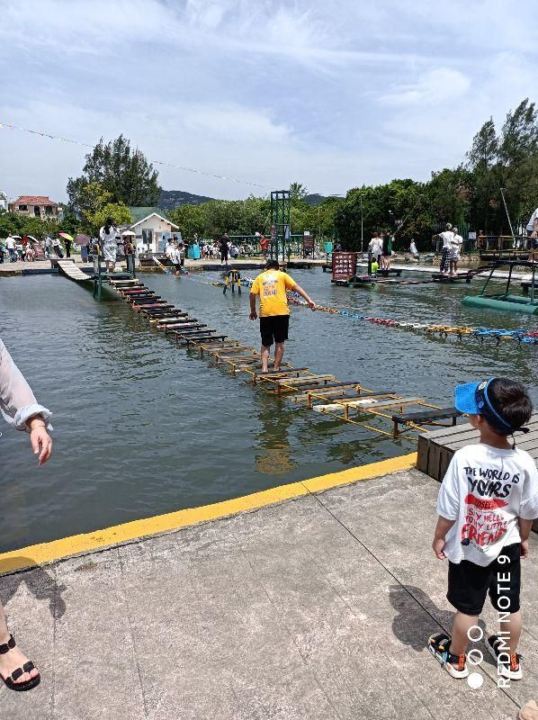 第二天一早吃了海鲜面(48元/份),就打车去乌石塘(车费7块多)。乌石塘景区门票40元,可以免费坐渔船在海湾兜一圈(2分钟左右),另有付费项目拉蟹笼(150元10人AA,捞到的蟹可以带走)。乌石塘的碎石滩上的石头个个圆润光滑,小儿子说石头就像大鸡蛋,据说都是自然形成。这里天蓝!水清!沙沙海风,细细潮音,双脚站在海水中,清爽极了!另外一侧还有免费的水上乐园,分儿童区,成人区,项目很多,注意有落水风险哦(我和我大儿子都落水了),建议多备一套衣服。带小二子捉泥鳅要另付30元买小网兜和小桶,泥鳅也没多少,可惜一条都没有捉到。