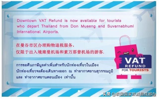 5.当离开泰国时,总购物超过5000泰铢,就可以在机场申请退税。