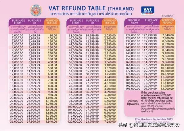 比如。单张退税单购物2000-2499泰铢,退80铢,相当于退4%,最高退税约为6.1%。