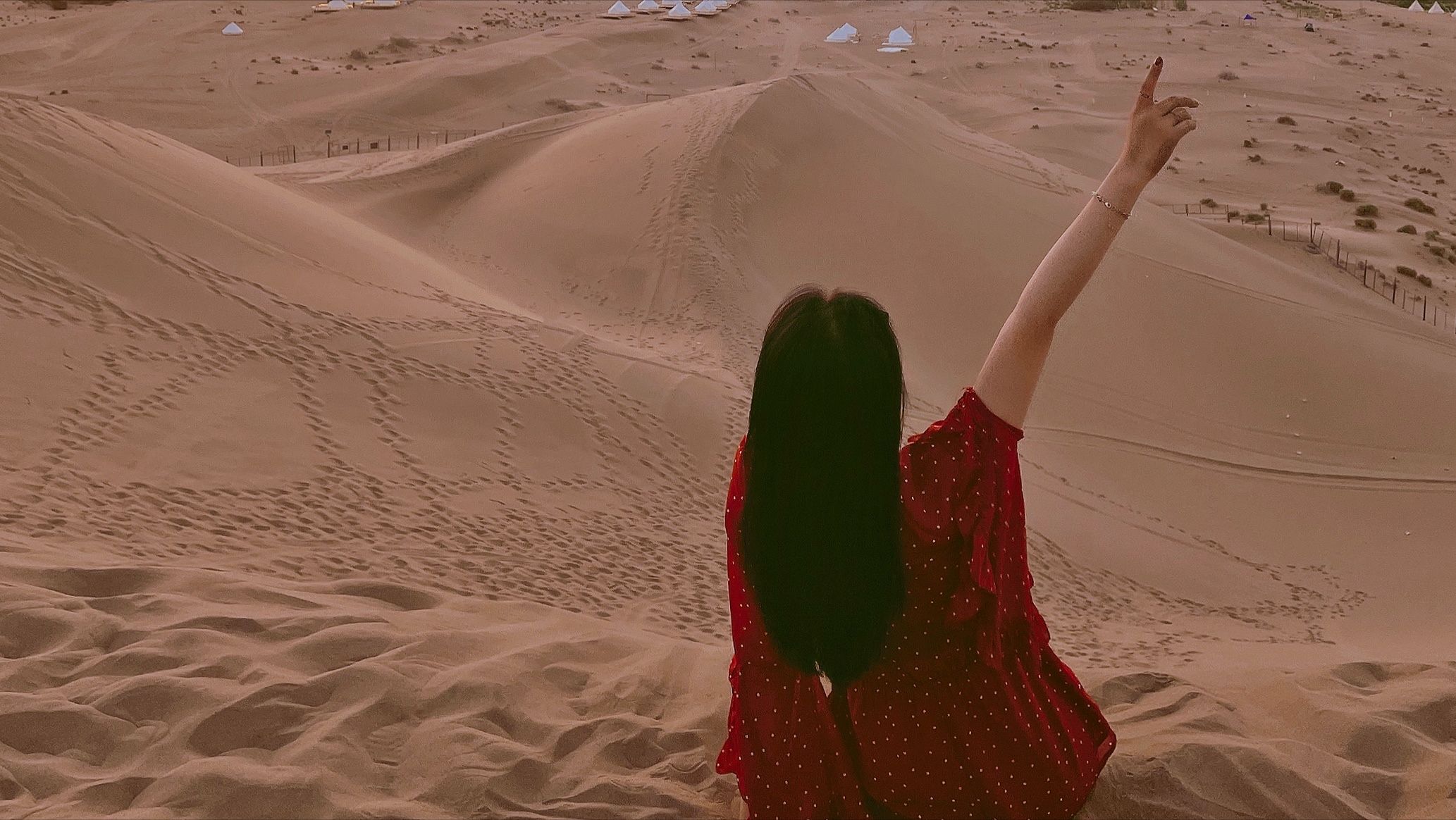 大红裙,鸣沙山百搭
