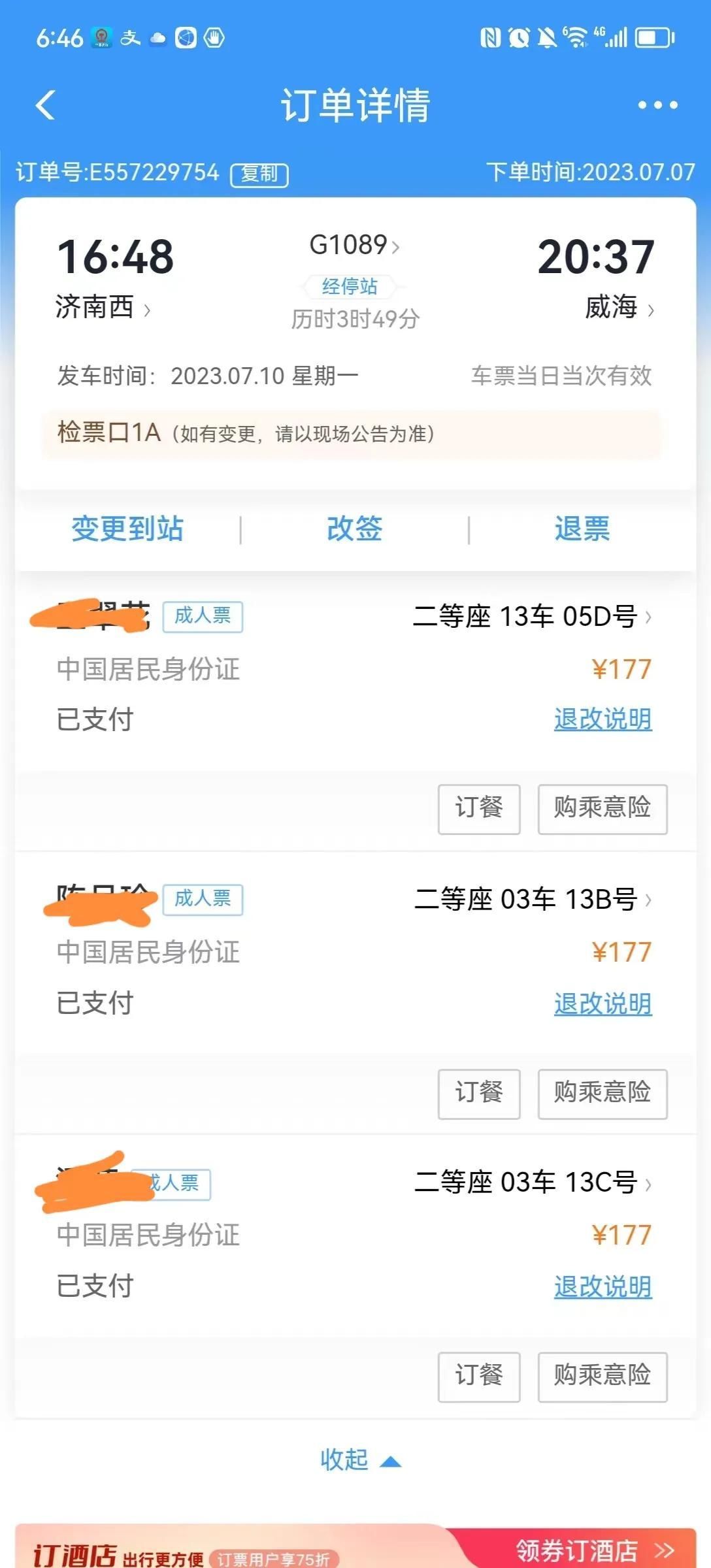 由于是说走就走,我们没有订到南京南直达威海的高铁票,只能从南京南—济南西—转乘威海。但由于南京南到济南西高铁晚点,导致我们转乘时间很紧张,然后找那个1A检票口费了一些周折。所以如果转乘,还要考虑动车会晚点。