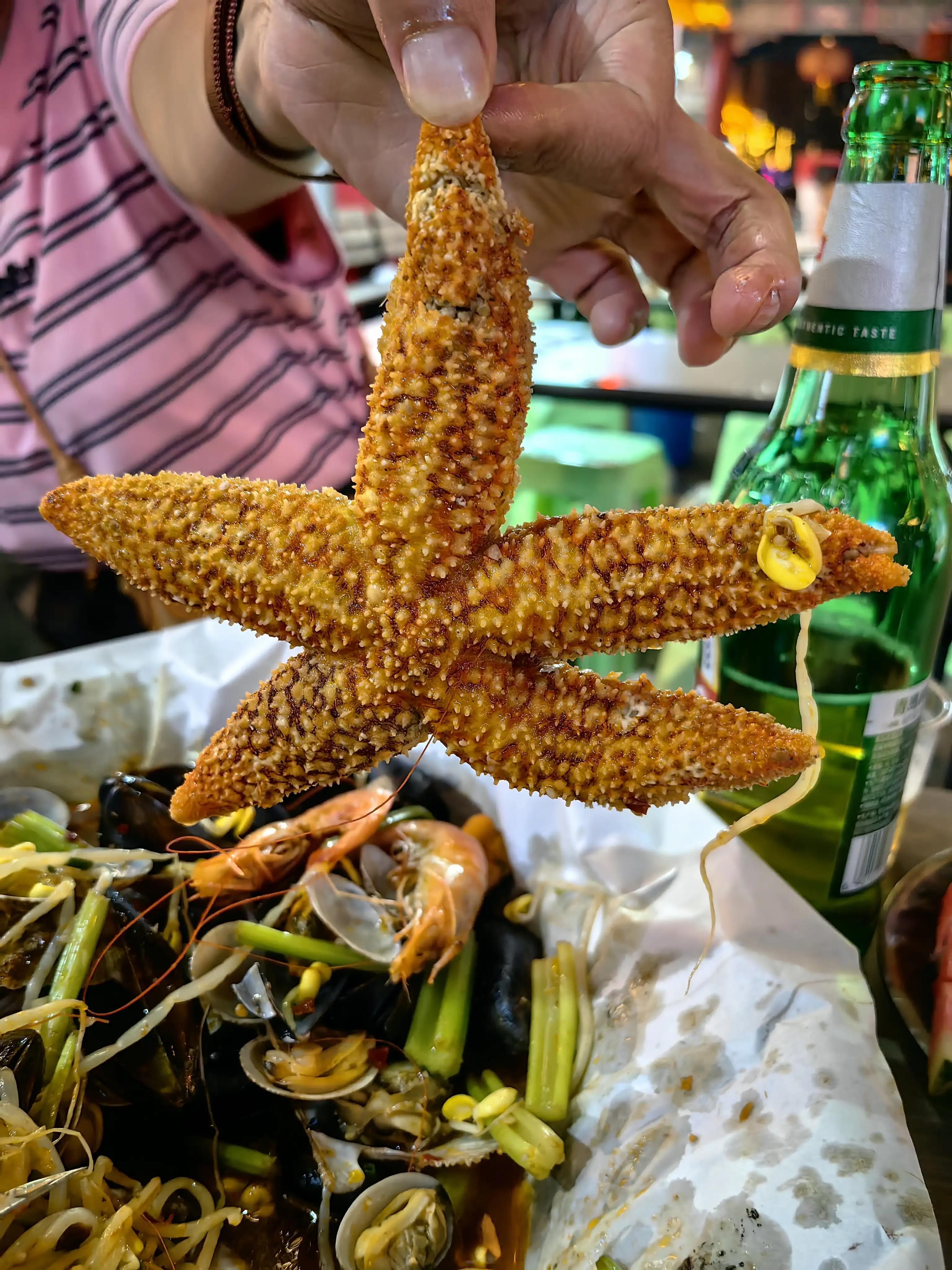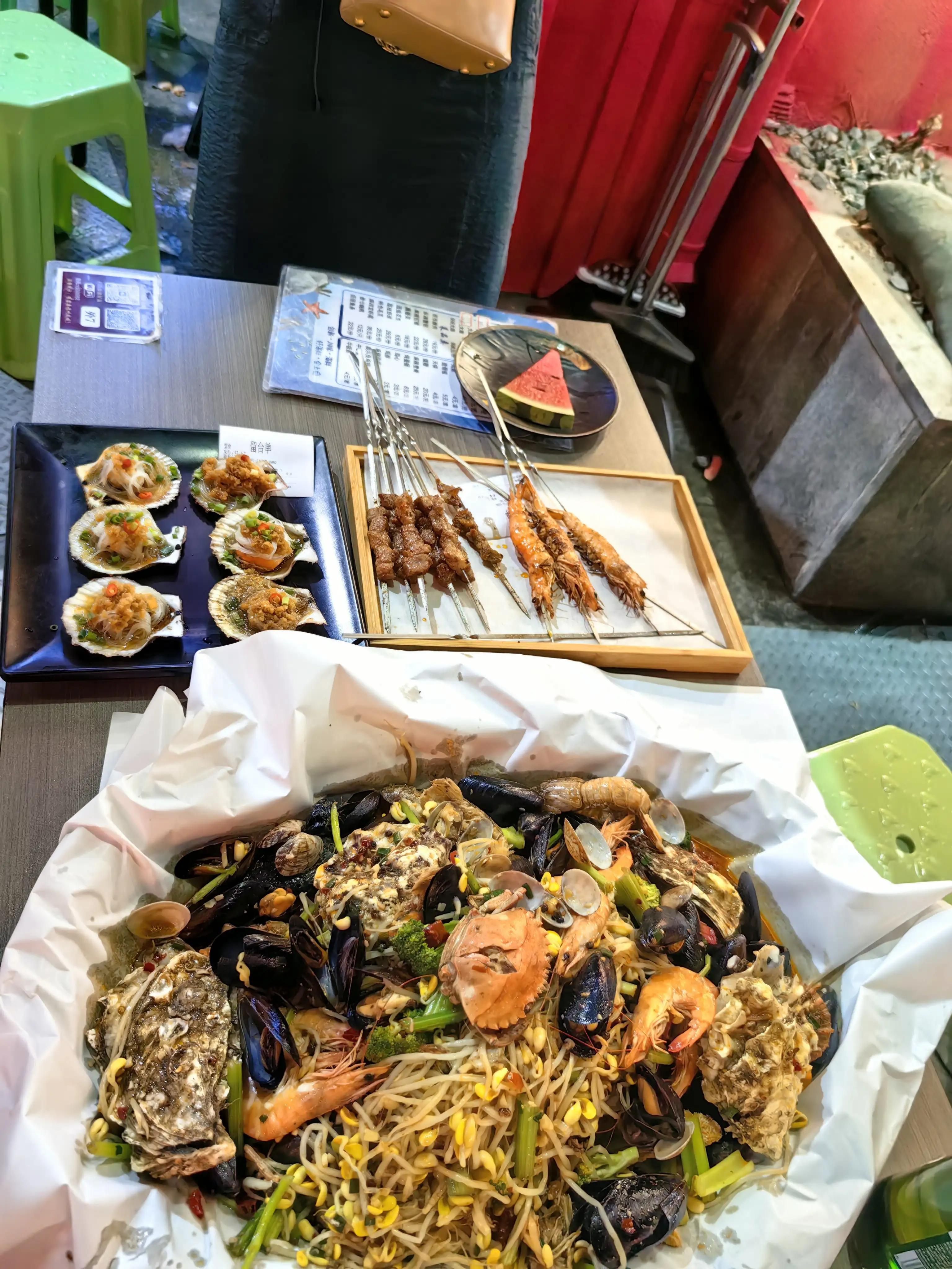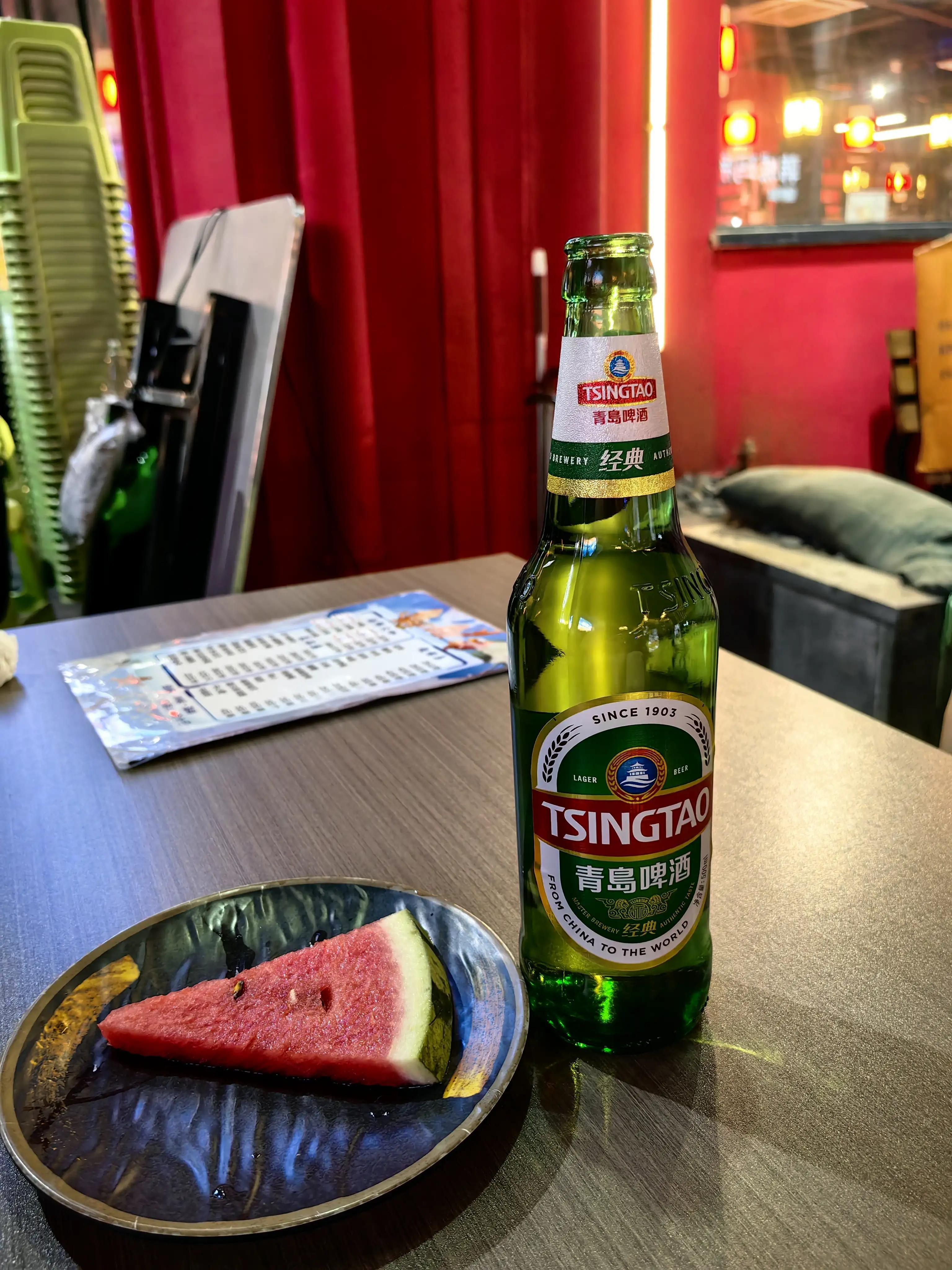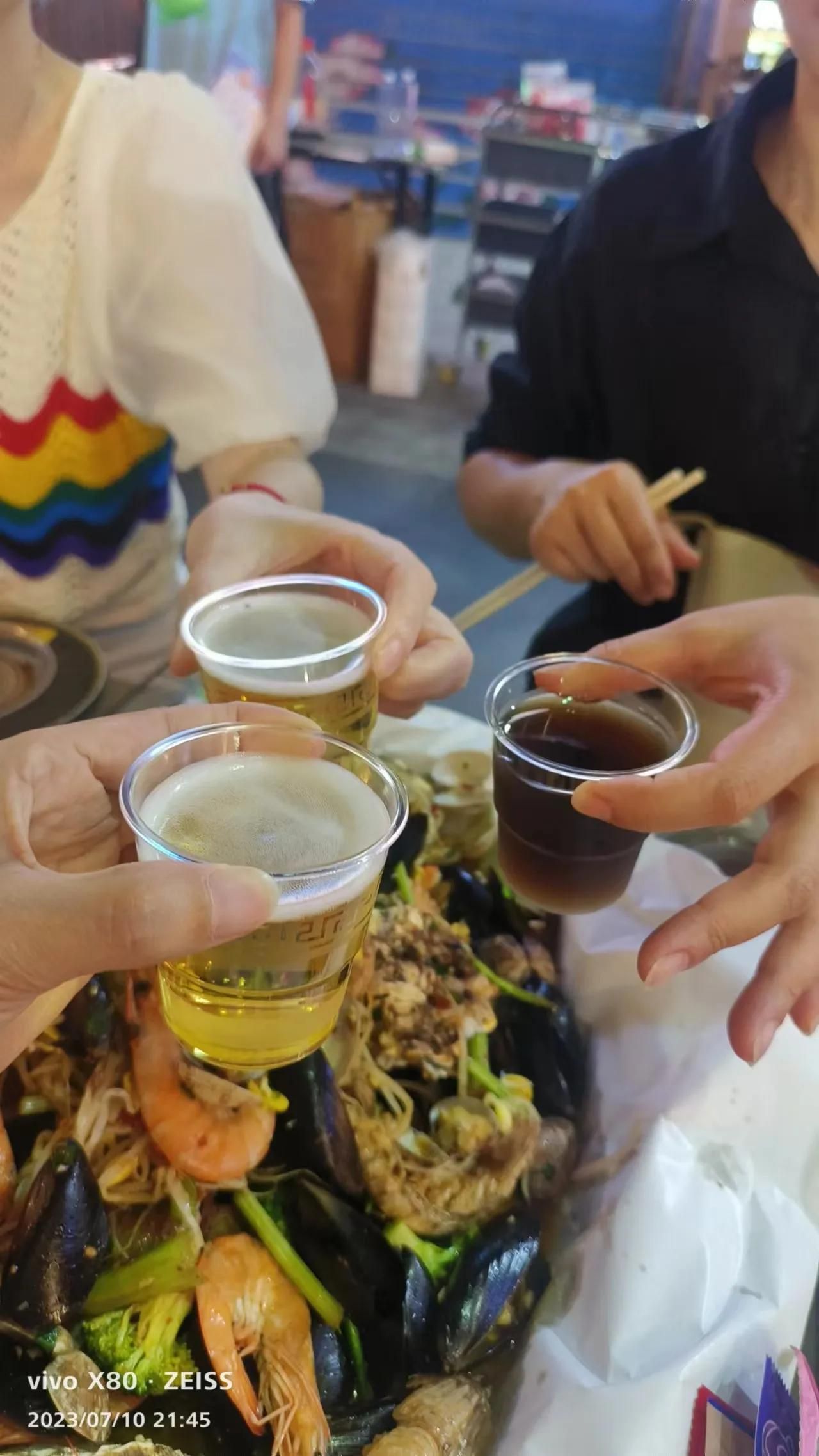 安顿好行李,去酒店附近的韩乐坊450元吃了个海鲜大枷,不喝酒的我们还点了一瓶青岛啤酒,还有冰冰凉的酸梅汤,吃完海鲜大餐,感觉这九个多小时的车值了。这就是我们乐并快乐的第一天威海游。