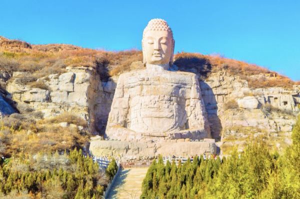 3、蒙山大佛:蒙山大佛又名西山大佛,位于山西省太原市西南20余公里处的蒙山。它是目前最大的佛,比乐山大佛还要高一点。大佛给人一种很震撼的感觉,有几处最佳拍照景点,大家去到了那里都会有标识,可以根据最佳景点来拍照,一路上也没有很大的起伏的路,小孩和老人也可以来这个地方。