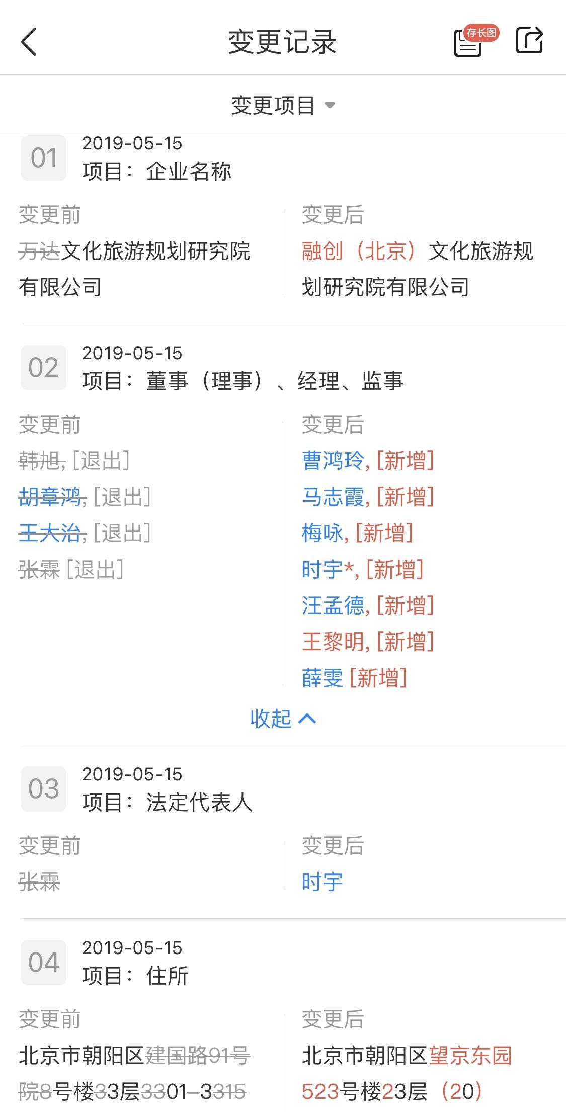 新京报讯(记者 王真真)万达文化旅游规划研究院已更名为融创文化旅游规划研究院。新京报记者在天眼查获悉,5月15日,万达文化旅游规划研究院有限公司更名为融创(北京)文化旅游规划研究院有限公司,张霖卸任法定代表人,时宇接任。