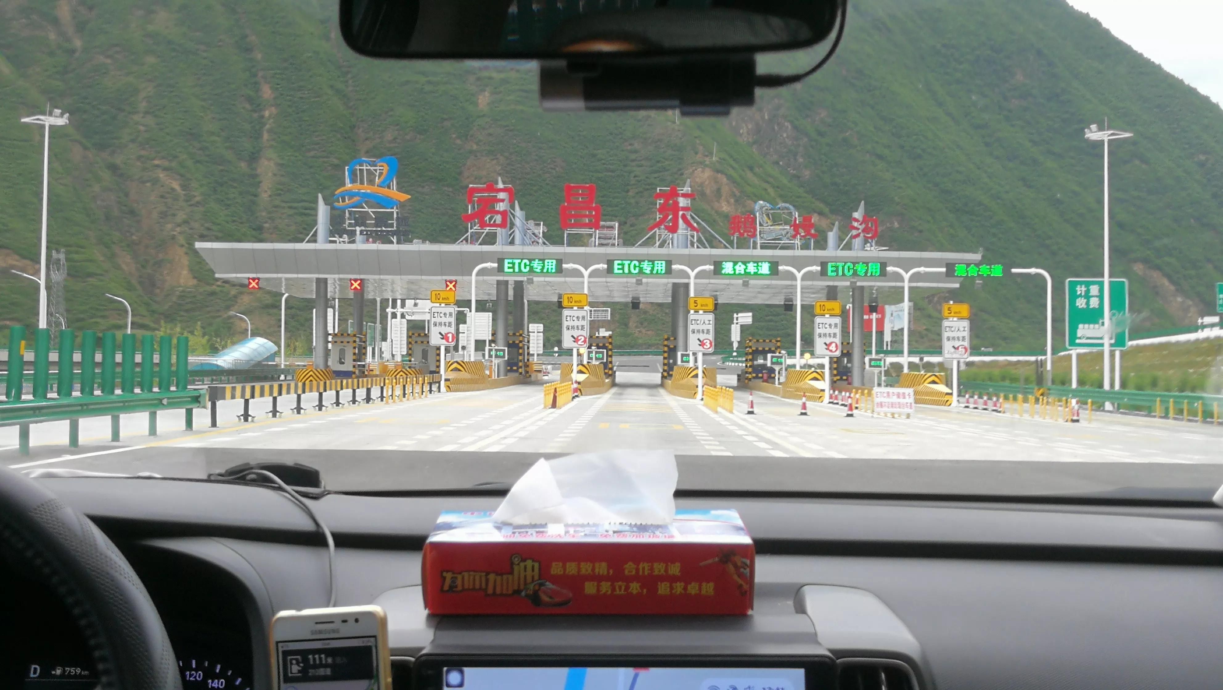 上七楼用早餐,有蛋无肉,几个凉菜和热菜,花卷,面包,豆浆和黑米粥,餐厅整洁,几张桌子,只有一名服务员在餐厅打理,不时跟来就餐的人聊几句。下雨了,气温下降,加件衣服向位于陇南市宕昌县的官鹅沟国家森林公园出发,途经连霍高速、十天高速、平绵高速、兰海高速到宕昌东(鹅嫚沟)G212出口下高速,沿着岷江(兰渝线)穿过宕昌县城到达景区。途经礼县服务区休息,雨渐渐变小,洁从这里开始驾车,穿过几个隧道,恰巧路过一个七巧隧道,暗示洁是个巧手的媳妇。