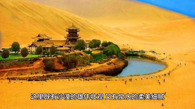 3.鸣沙山月牙泉风景区:位于敦煌市南郊,因沙动有声而得名。在沙漠中有一泓泉水,形如弯月,因此得名月牙泉。这里既有沙漠的雄伟壮观,又有泉水的柔美细腻。