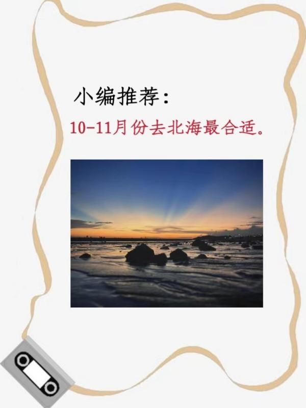 1、4-11月,北海的海水年平均温度较高,春、夏、秋三季都可以游泳,因此每年4-11月是北海旅游的最好时间。这期间阳光充足,海水温暖,银滩游人无数、乐趣无穷。涠洲岛上更是赏日出、观海景、游海岛的最佳时节。出行前要注意是否有台风天气。
