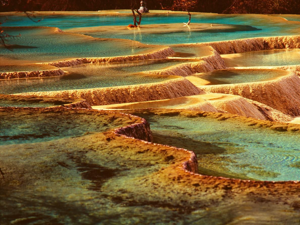 "人间瑶池"黄龙海拔比较高,温度会更低些,景点主要都集中在黄龙沟,五彩池的水都是从一条沟流出来的,因为里面有丰富的矿物质,所以会呈现出不一样的颜色,但五彩池的颜色却也不止五种。下山途中也有很多美景,运气好还能看到不怕人的小松鼠。